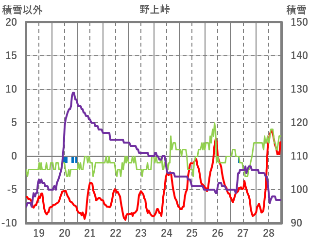 | 日 | 時 | 気温 | 降水 | 風向/風速 | 日照 | 積雪 | 降雪 |