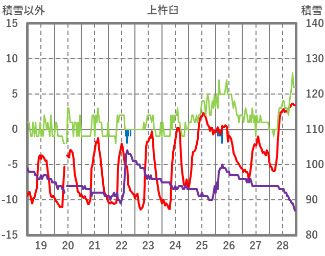 | 日 | 時 | 気温 | 降水 | 風向/風速 | 日照 | 積雪 | 降雪 |