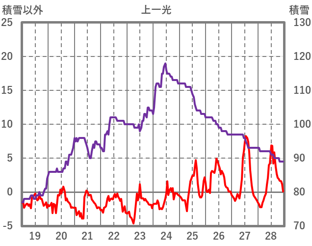 | 日 | 時 | 気温 | 降水 | 風向/風速 | 日照 | 積雪 | 降雪 |