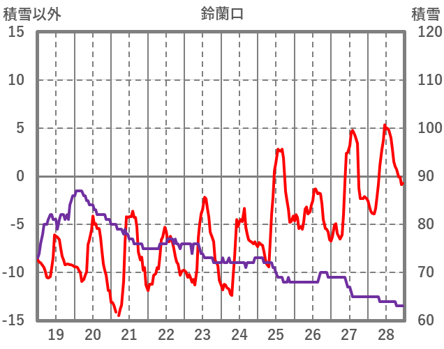 | 日 | 時 | 気温 | 降水 | 風向/風速 | 日照 | 積雪 | 降雪 |