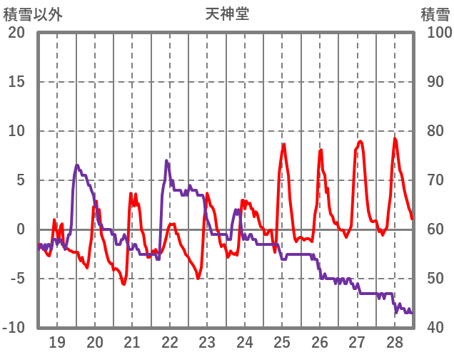 | 日 | 時 | 気温 | 降水 | 風向/風速 | 日照 | 積雪 | 降雪 |