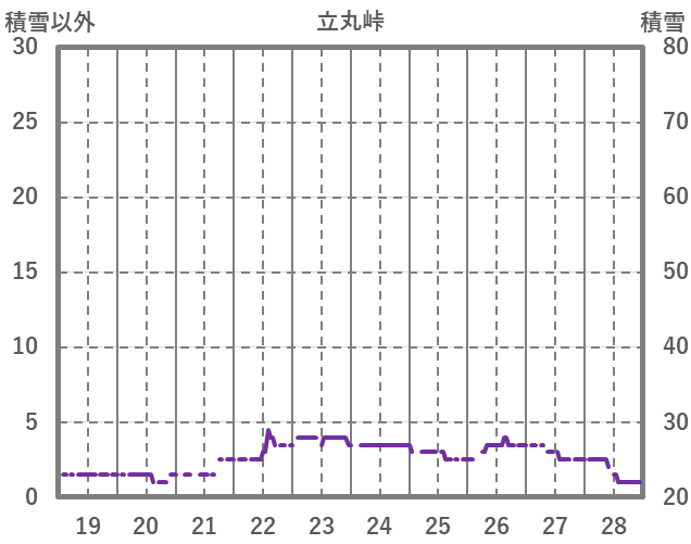 | 日 | 時 | 気温 | 降水 | 風向/風速 | 日照 | 積雪 | 降雪 |