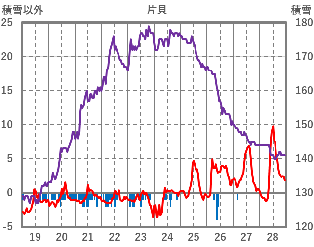 | 日 | 時 | 気温 | 降水 | 風向/風速 | 日照 | 積雪 | 降雪 |