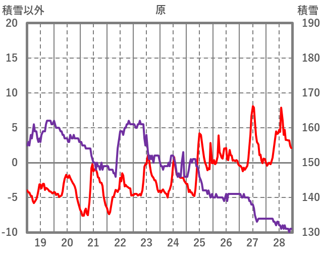 | 日 | 時 | 気温 | 降水 | 風向/風速 | 日照 | 積雪 | 降雪 |