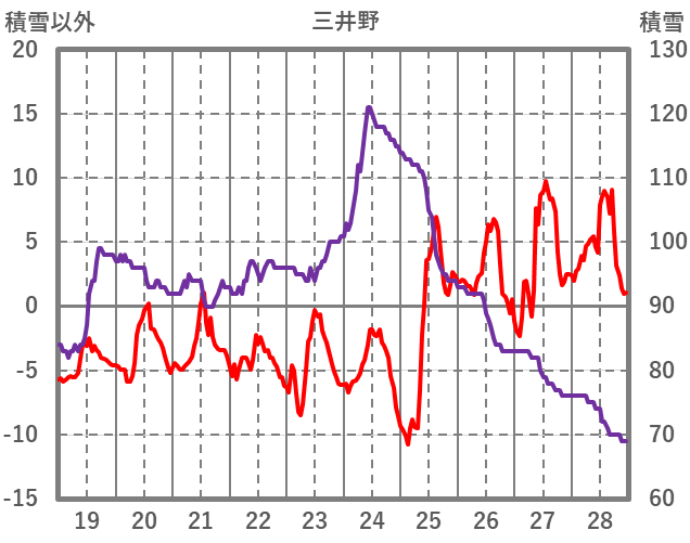 | 日 | 時 | 気温 | 降水 | 風向/風速 | 日照 | 積雪 | 降雪 |