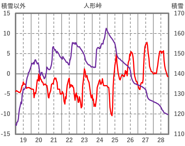 | 日 | 時 | 気温 | 降水 | 風向/風速 | 日照 | 積雪 | 降雪 |