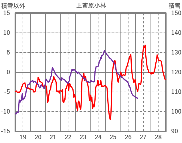 | 日 | 時 | 気温 | 降水 | 風向/風速 | 日照 | 積雪 | 降雪 |
