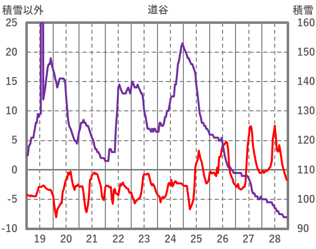 | 日 | 時 | 気温 | 降水 | 風向/風速 | 日照 | 積雪 | 降雪 |