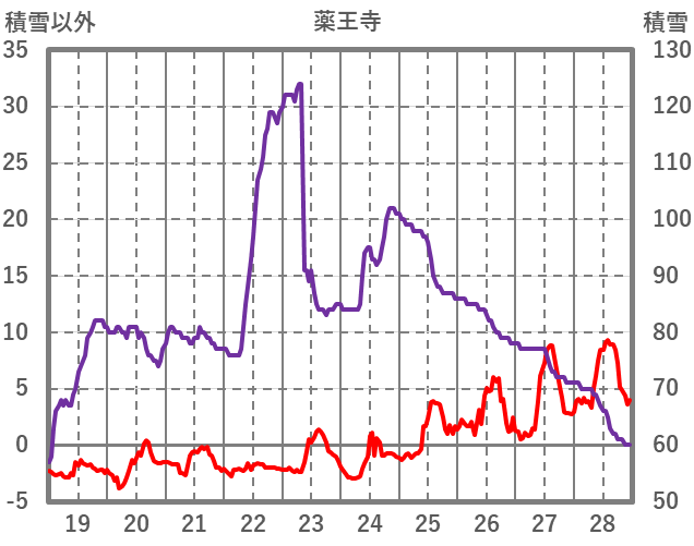 | 日 | 時 | 気温 | 降水 | 風向/風速 | 日照 | 積雪 | 降雪 |