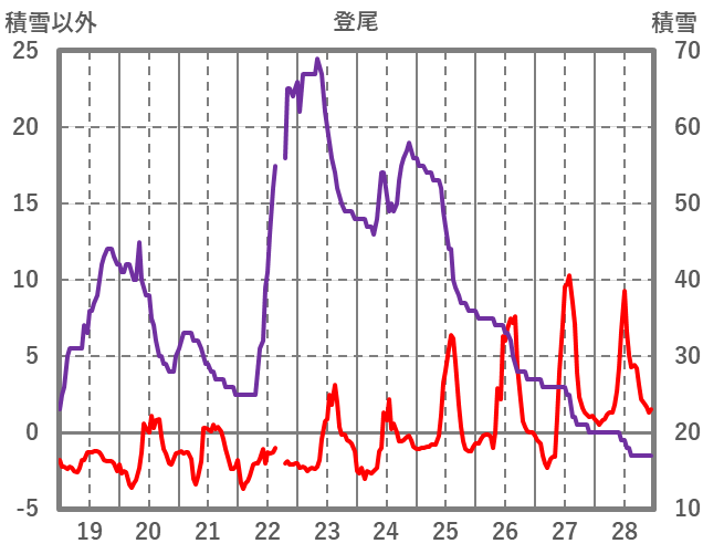 | 日 | 時 | 気温 | 降水 | 風向/風速 | 日照 | 積雪 | 降雪 |