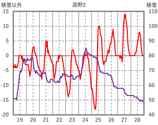 | 日 | 時 | 気温 | 降水 | 風向/風速 | 日照 | 積雪 | 降雪 |