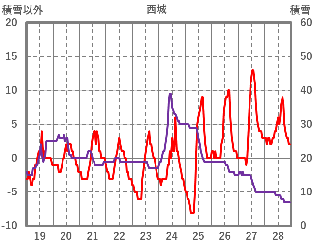 | 日 | 時 | 気温 | 降水 | 風向/風速 | 日照 | 積雪 | 降雪 |