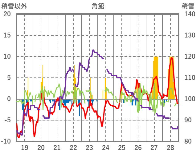 | 日 | 時 | 気温 | 降水 | 風向/風速 | 日照 | 積雪 | 降雪 |
