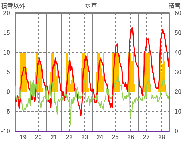 | 日 | 時 | 気温 | 降水 | 風向/風速 | 日照 | 積雪 | 降雪 |