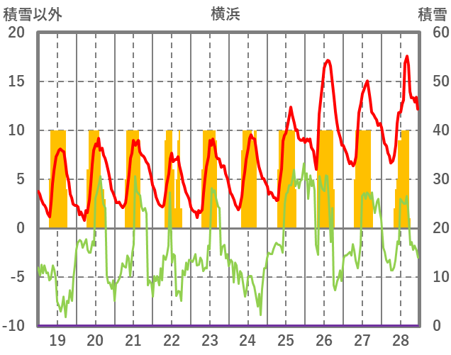 | 日 | 時 | 気温 | 降水 | 風向/風速 | 日照 | 積雪 | 降雪 |