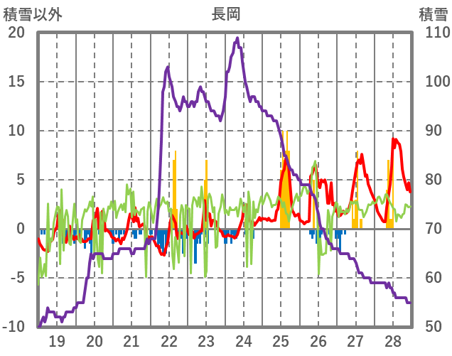 | 日 | 時 | 気温 | 降水 | 風向/風速 | 日照 | 積雪 | 降雪 |
