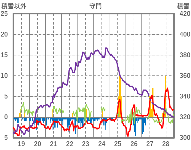 | 日 | 時 | 気温 | 降水 | 風向/風速 | 日照 | 積雪 | 降雪 |