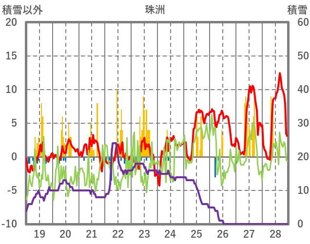 | 日 | 時 | 気温 | 降水 | 風向/風速 | 日照 | 積雪 | 降雪 |