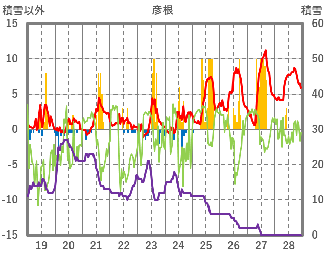 | 日 | 時 | 気温 | 降水 | 風向/風速 | 日照 | 積雪 | 降雪 |