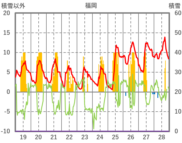 | 日 | 時 | 気温 | 降水 | 風向/風速 | 日照 | 積雪 | 降雪 |