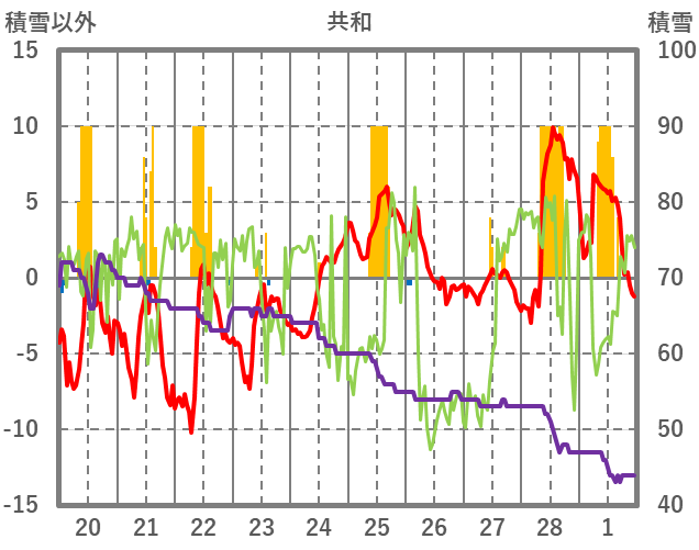 | 日 | 時 | 気温 | 降水 | 風向/風速 | 日照 | 積雪 | 降雪 |