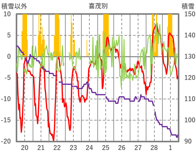 | 日 | 時 | 気温 | 降水 | 風向/風速 | 日照 | 積雪 | 降雪 |