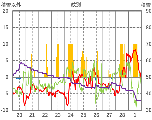 | 日 | 時 | 気温 | 降水 | 風向/風速 | 日照 | 積雪 | 降雪 |
