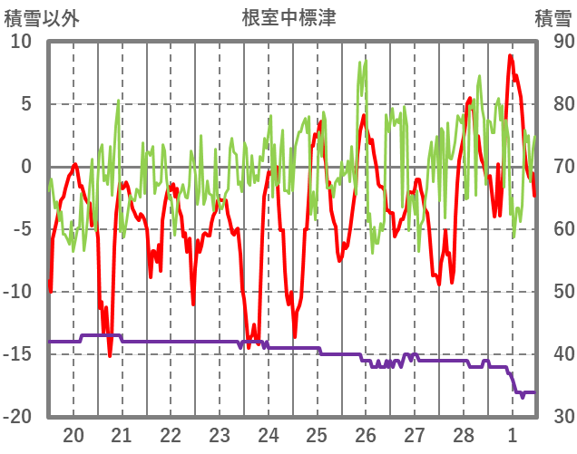 | 日 | 時 | 気温 | 降水 | 風向/風速 | 日照 | 積雪 | 降雪 |