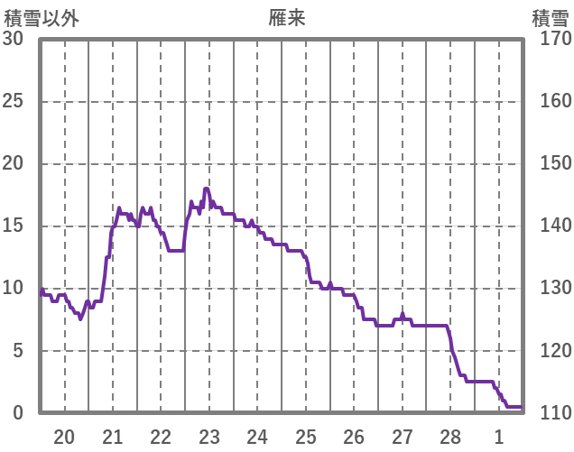 | 日 | 時 | 気温 | 降水 | 風向/風速 | 日照 | 積雪 | 降雪 |