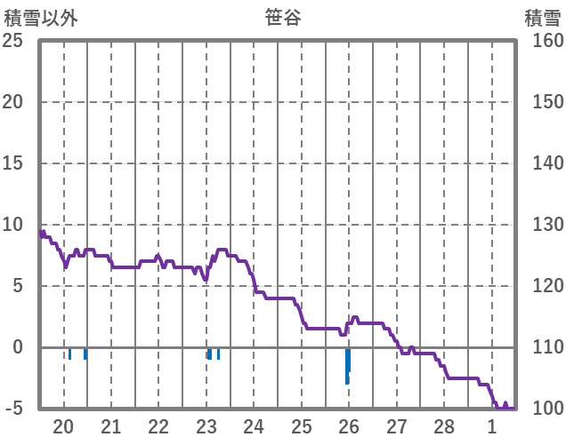 | 日 | 時 | 気温 | 降水 | 風向/風速 | 日照 | 積雪 | 降雪 |