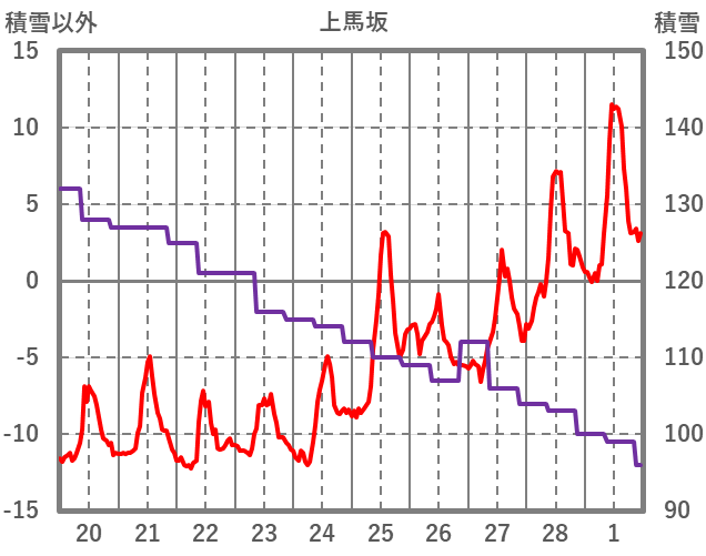 | 日 | 時 | 気温 | 降水 | 風向/風速 | 日照 | 積雪 | 降雪 |