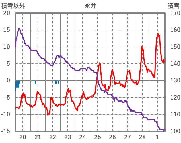 | 日 | 時 | 気温 | 降水 | 風向/風速 | 日照 | 積雪 | 降雪 |