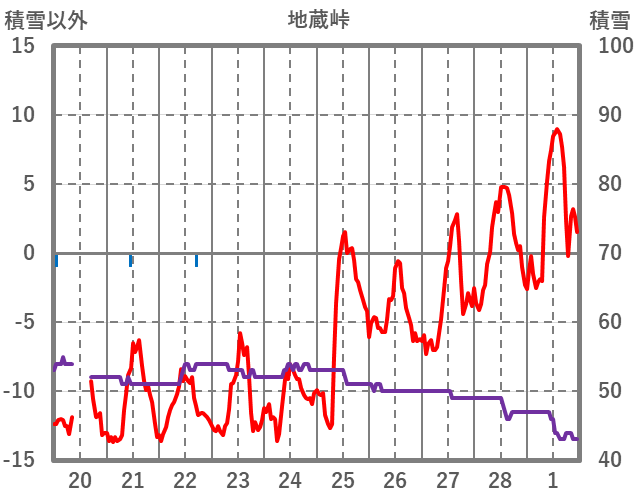 | 日 | 時 | 気温 | 降水 | 風向/風速 | 日照 | 積雪 | 降雪 |