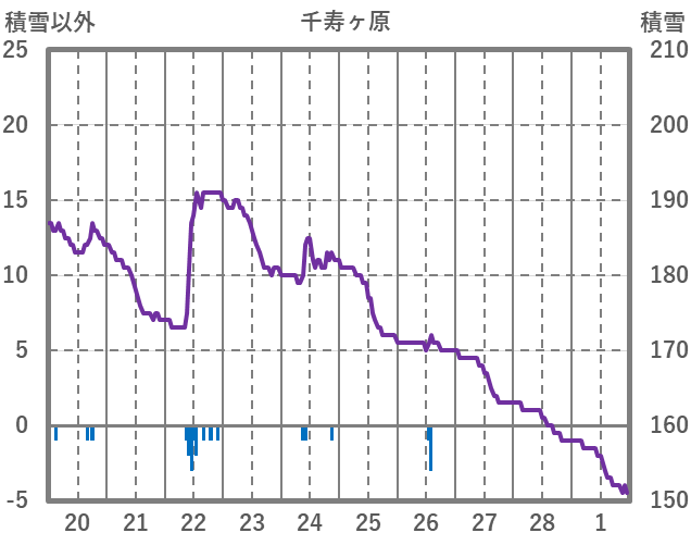 | 日 | 時 | 気温 | 降水 | 風向/風速 | 日照 | 積雪 | 降雪 |
