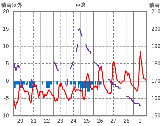| 日 | 時 | 気温 | 降水 | 風向/風速 | 日照 | 積雪 | 降雪 |