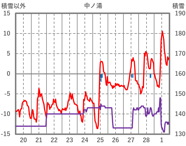 | 日 | 時 | 気温 | 降水 | 風向/風速 | 日照 | 積雪 | 降雪 |