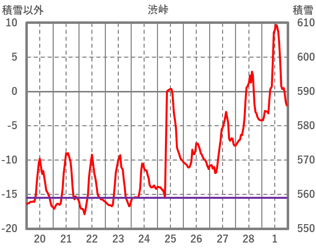 | 日 | 時 | 気温 | 降水 | 風向/風速 | 日照 | 積雪 | 降雪 |