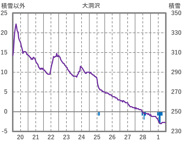 | 日 | 時 | 気温 | 降水 | 風向/風速 | 日照 | 積雪 | 降雪 |