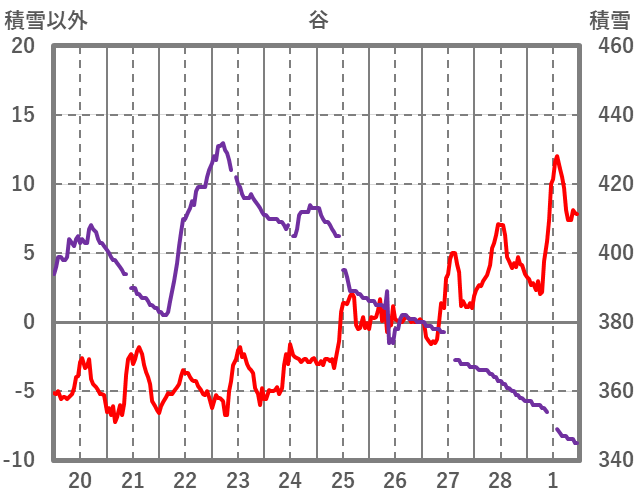 | 日 | 時 | 気温 | 降水 | 風向/風速 | 日照 | 積雪 | 降雪 |