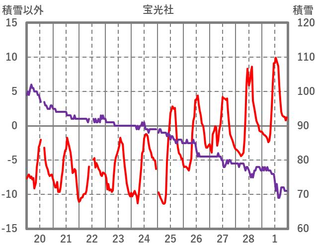 | 日 | 時 | 気温 | 降水 | 風向/風速 | 日照 | 積雪 | 降雪 |