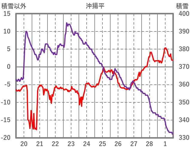 | 日 | 時 | 気温 | 降水 | 風向/風速 | 日照 | 積雪 | 降雪 |