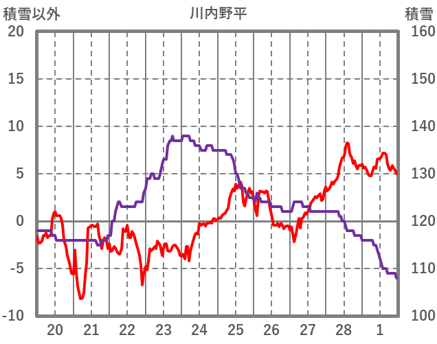 | 日 | 時 | 気温 | 降水 | 風向/風速 | 日照 | 積雪 | 降雪 |