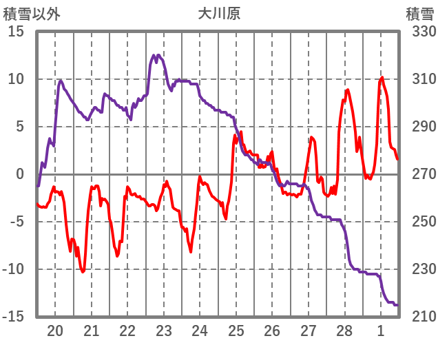 | 日 | 時 | 気温 | 降水 | 風向/風速 | 日照 | 積雪 | 降雪 |