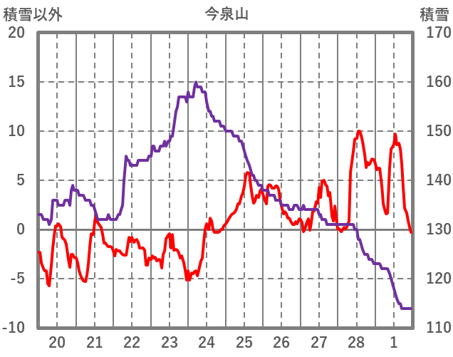 | 日 | 時 | 気温 | 降水 | 風向/風速 | 日照 | 積雪 | 降雪 |