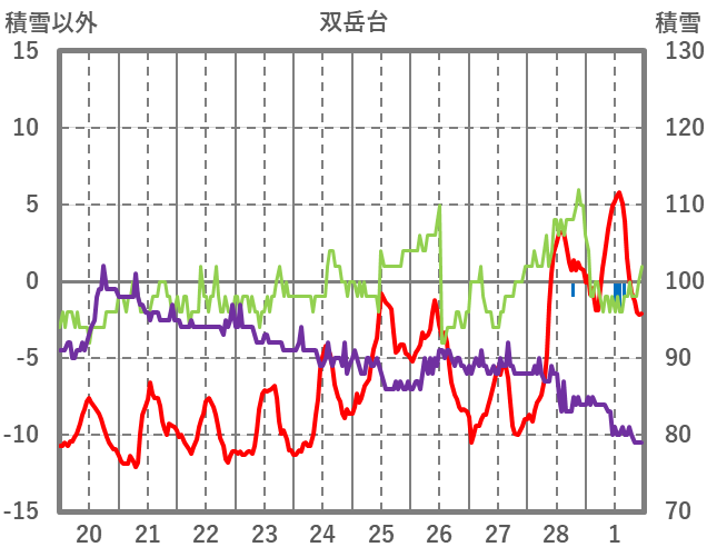 | 日 | 時 | 気温 | 降水 | 風向/風速 | 日照 | 積雪 | 降雪 |