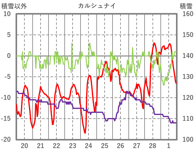 | 日 | 時 | 気温 | 降水 | 風向/風速 | 日照 | 積雪 | 降雪 |