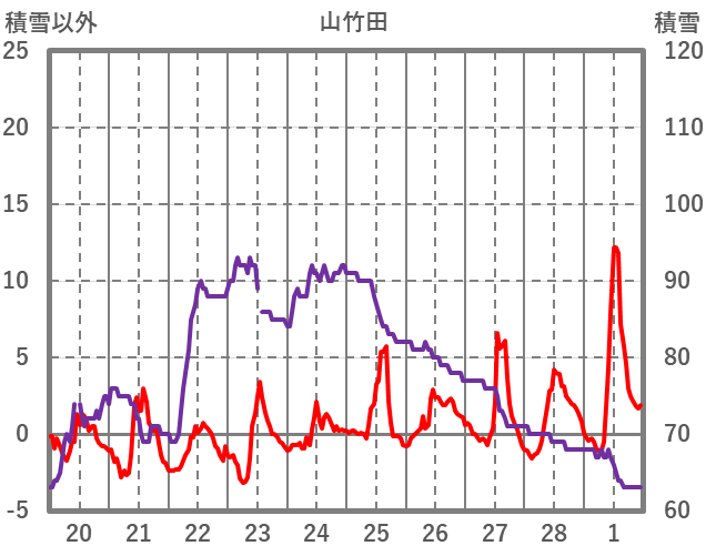 | 日 | 時 | 気温 | 降水 | 風向/風速 | 日照 | 積雪 | 降雪 |