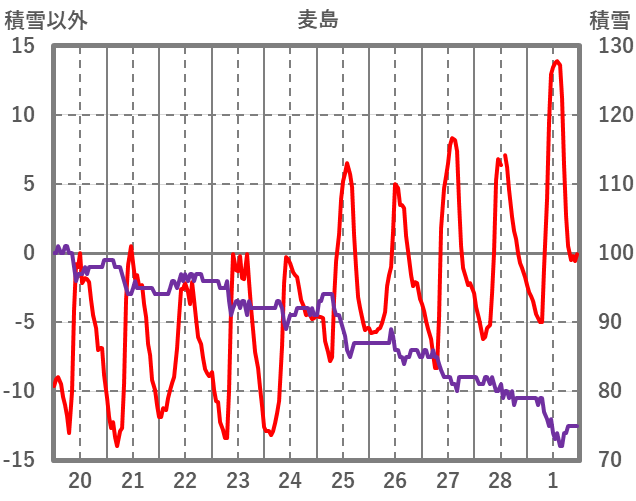 | 日 | 時 | 気温 | 降水 | 風向/風速 | 日照 | 積雪 | 降雪 |