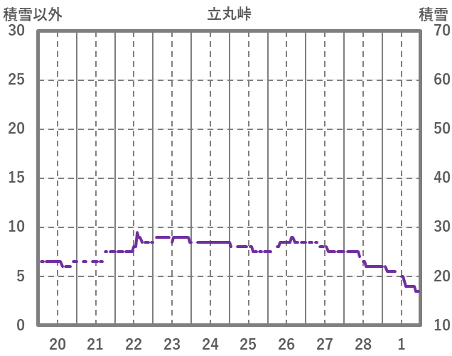 | 日 | 時 | 気温 | 降水 | 風向/風速 | 日照 | 積雪 | 降雪 |