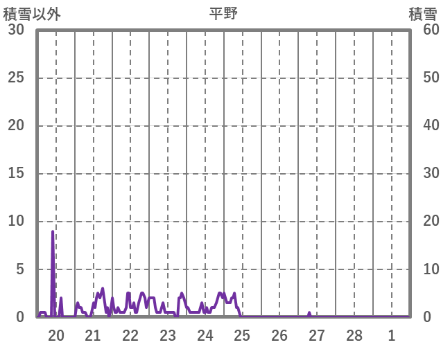 | 日 | 時 | 気温 | 降水 | 風向/風速 | 日照 | 積雪 | 降雪 |